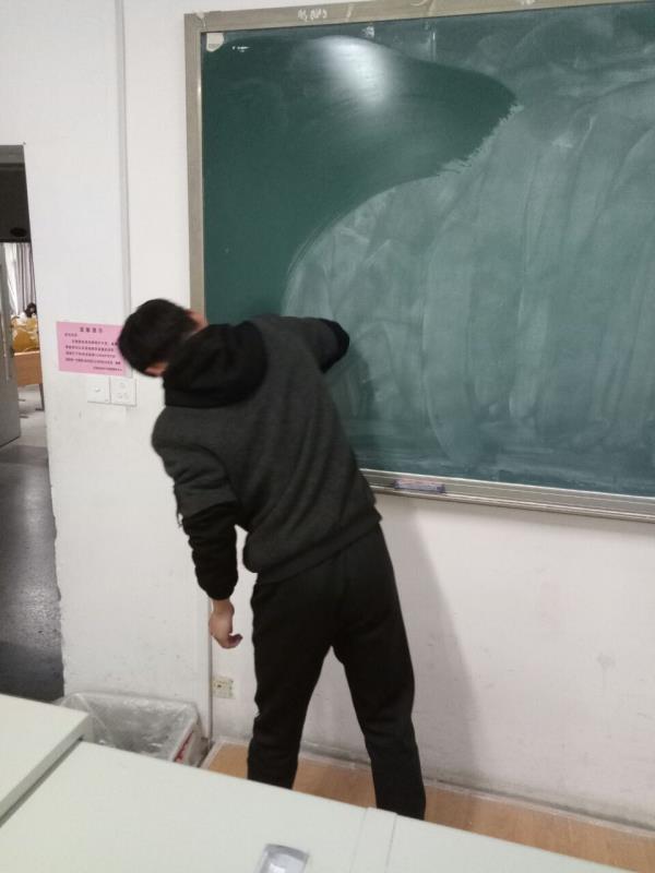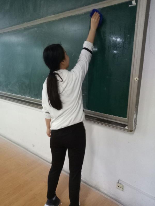 志愿者们分工合作,相互配合,用自己准备好的抹布,把一教、二教、图文中心所有教室的黑板、讲台、多媒体机箱等擦得干干净净,为师生提供了更加舒适的学习环境。