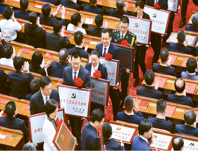 今天,我们隆重召开全国抗击新冠肺炎疫情表彰大会,向作出杰出贡献的功勋模范人物颁授共和国勋章和国家荣誉称号奖章,表彰抗疫先进个人和先进集体,弘扬伟大抗疫精神,为决胜全面建成小康社会、夺取新时代中国特色社会主义伟大胜利而不懈奋斗!