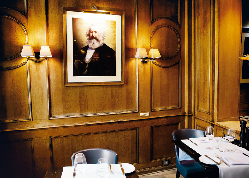 这是2018年2月7日在比利时首都布鲁塞尔市中心拍摄的白天鹅咖啡馆内景,当年马克思和恩格斯在这里撰写了《共产党宣言》。