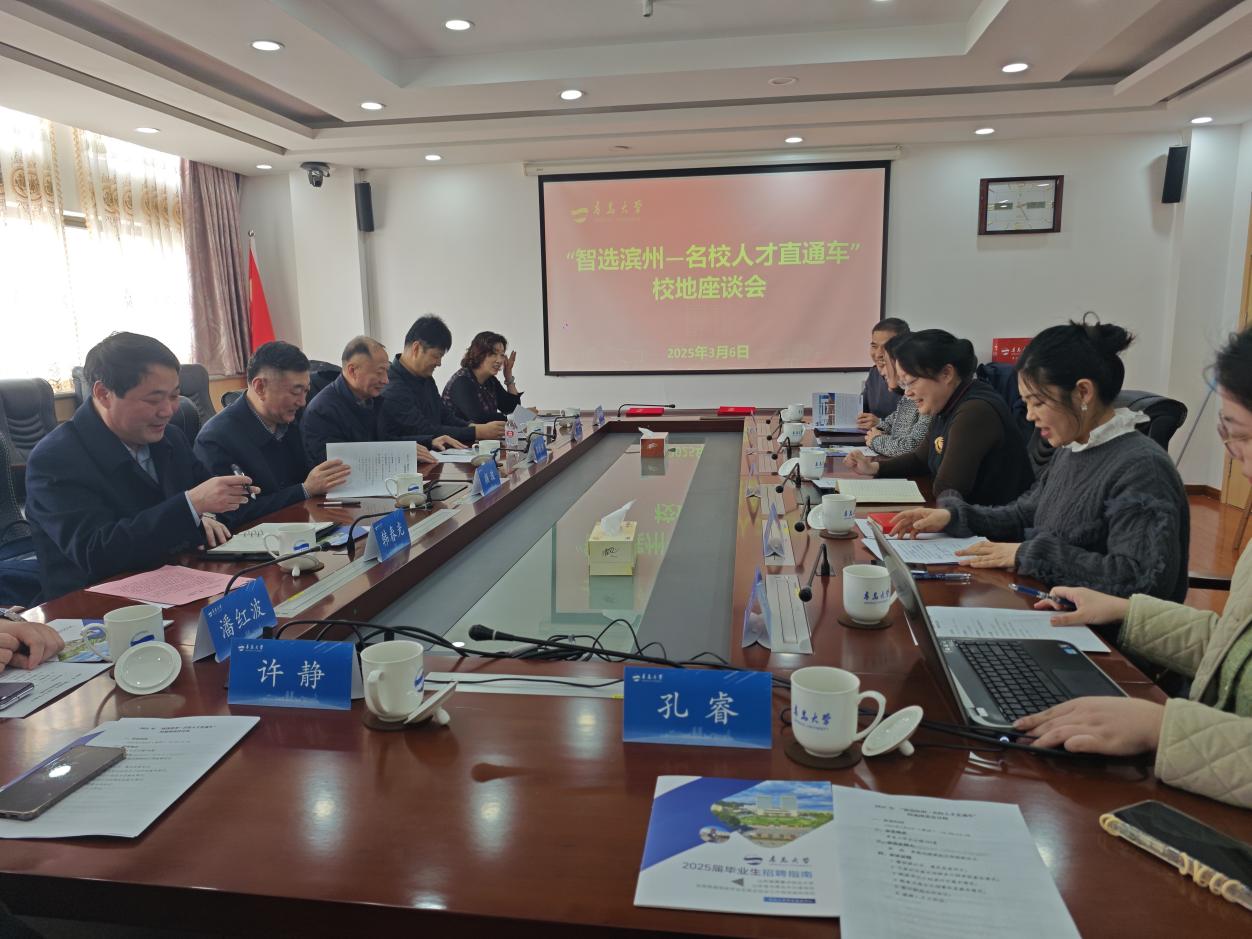座谈会上,颜波详细介绍了滨州市产业优势,人才政策,并希望与学校在人才培养,产学研融合等方面进一步加强合作。